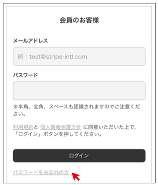 仮パスワードを発行いたしますので、「パスワードをお忘れの方」よりお手続きをお願い致します。